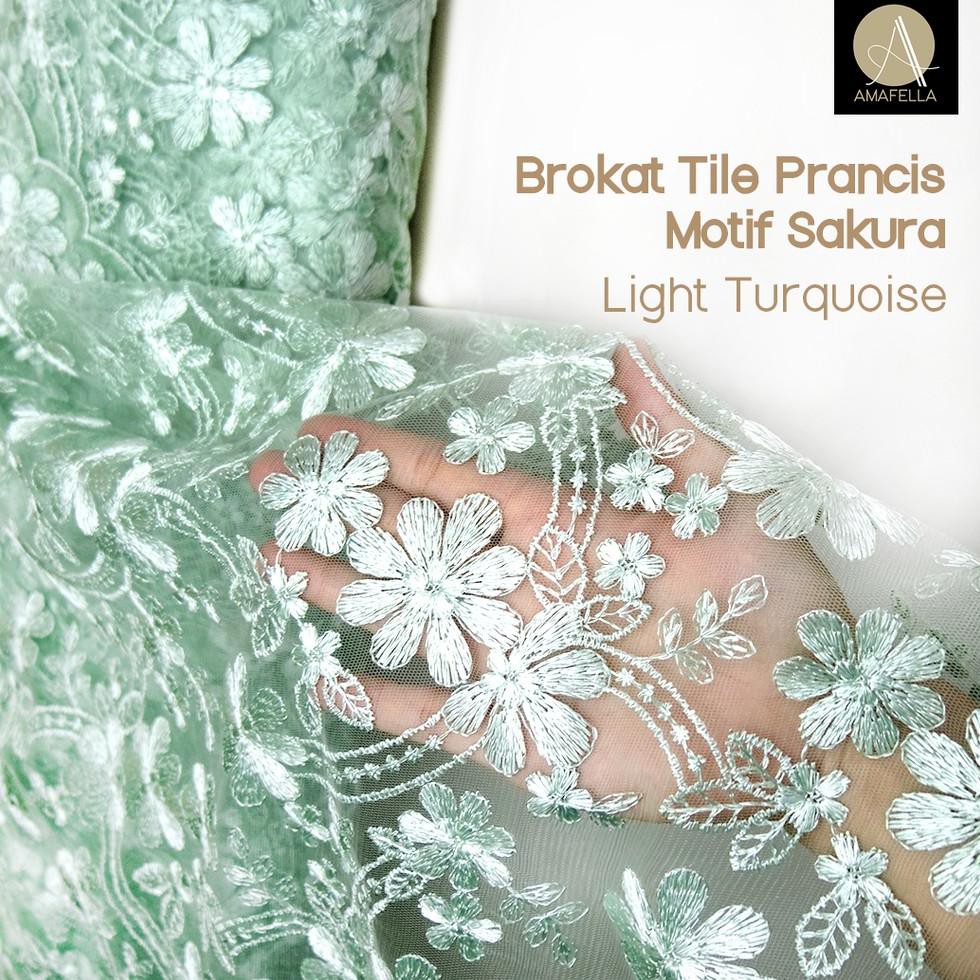 Jual 1 2 Meter Kain Brokat Tile Prancis Bahan Kebaya Motif Sakura Light Turquoise Mint Kode 498 Shopee Indonesia
